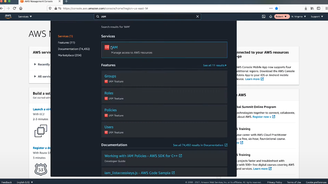 Step 2 : 검색창에 IAM 검색 및 상단 IAM 클릭