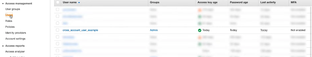 Step 3 : 좌측 ‘users’ 탭 클릭 및 권한을 부여할 계정 선택