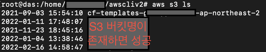# 3) 목표 S3 버킷이 출력된다면, 성공!!