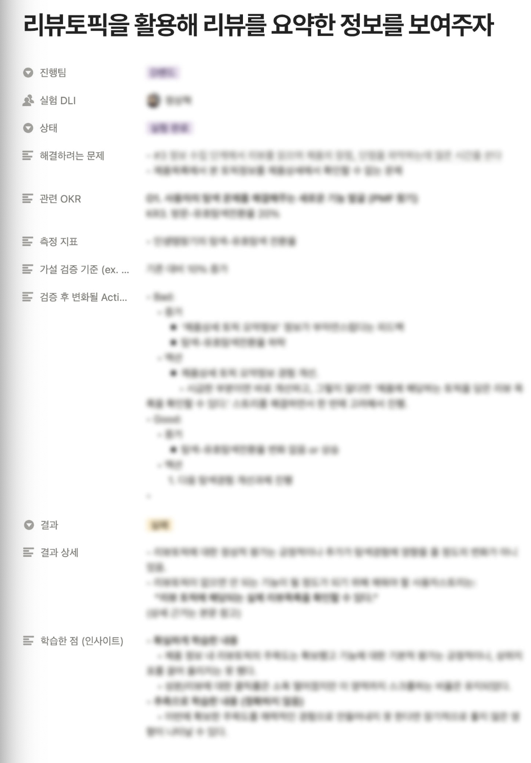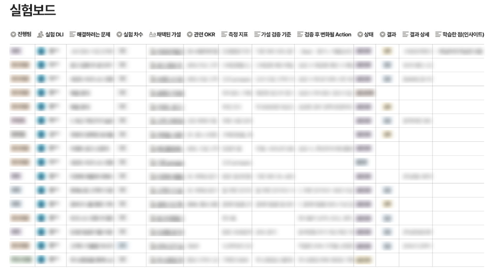 : 데이터/실험 기반 사고방식이 만들어 지려면, 모든 업무들이 데이터와 실험 기반으로 이뤄지는 환경 구축이 필요했음. 따라서 실제 진행중인 업무들부터, 데이터 기반 사고방식으로 실행되도록 유도함. 이런 방식이 자연스러워지도록,데이터 기반 실험 프로세스 프레임을 도입. 해당 프로세스의 목적은 1) 실험 횟수를 높여 성과 증대의 목표와 함께 2) 데이터 중심 문제 해결능력 배양.
