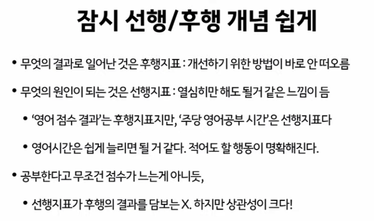 - 후행지표가 아닌, 선행지표에 해당하는 KPI를 설정할 것