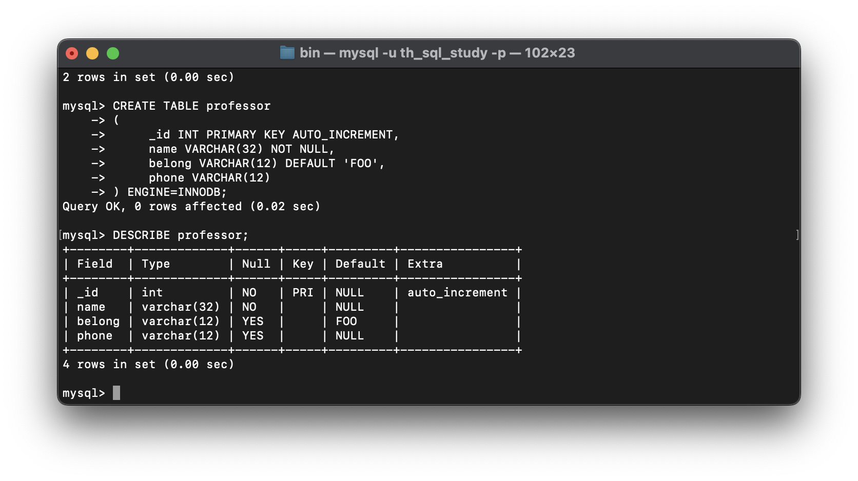 CREATE DATABASE {study_db} default CHARACTER SET UTF8;