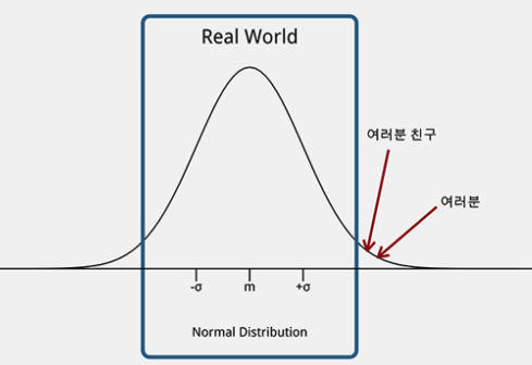 - 평균이 가장 볼록하고, 평균에서 멀어질 수록 높이가 낮아지는 분포
